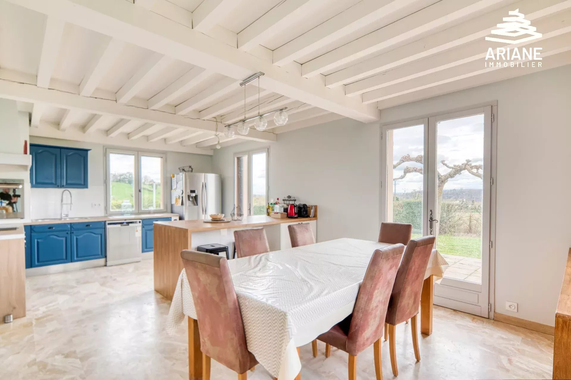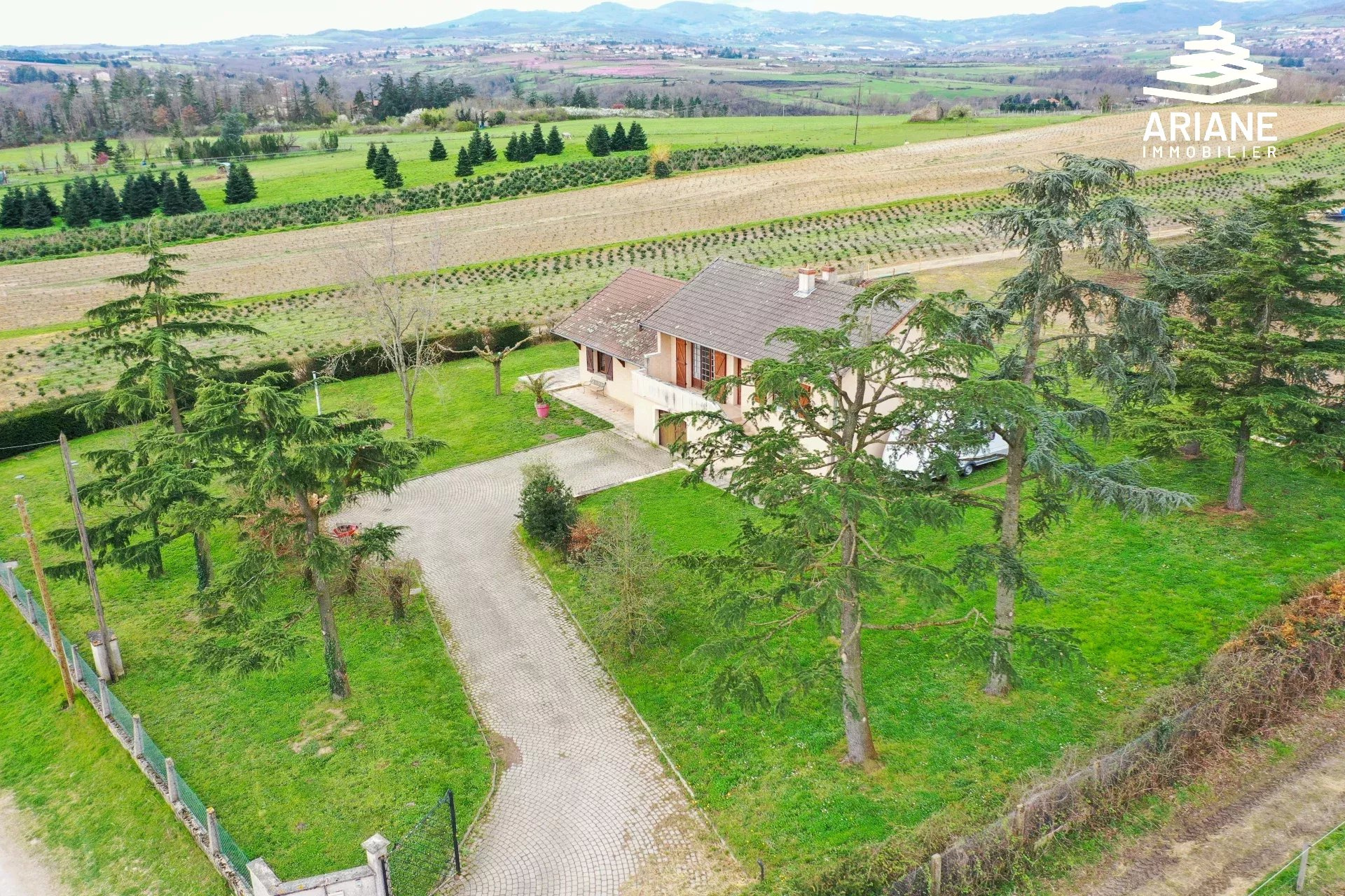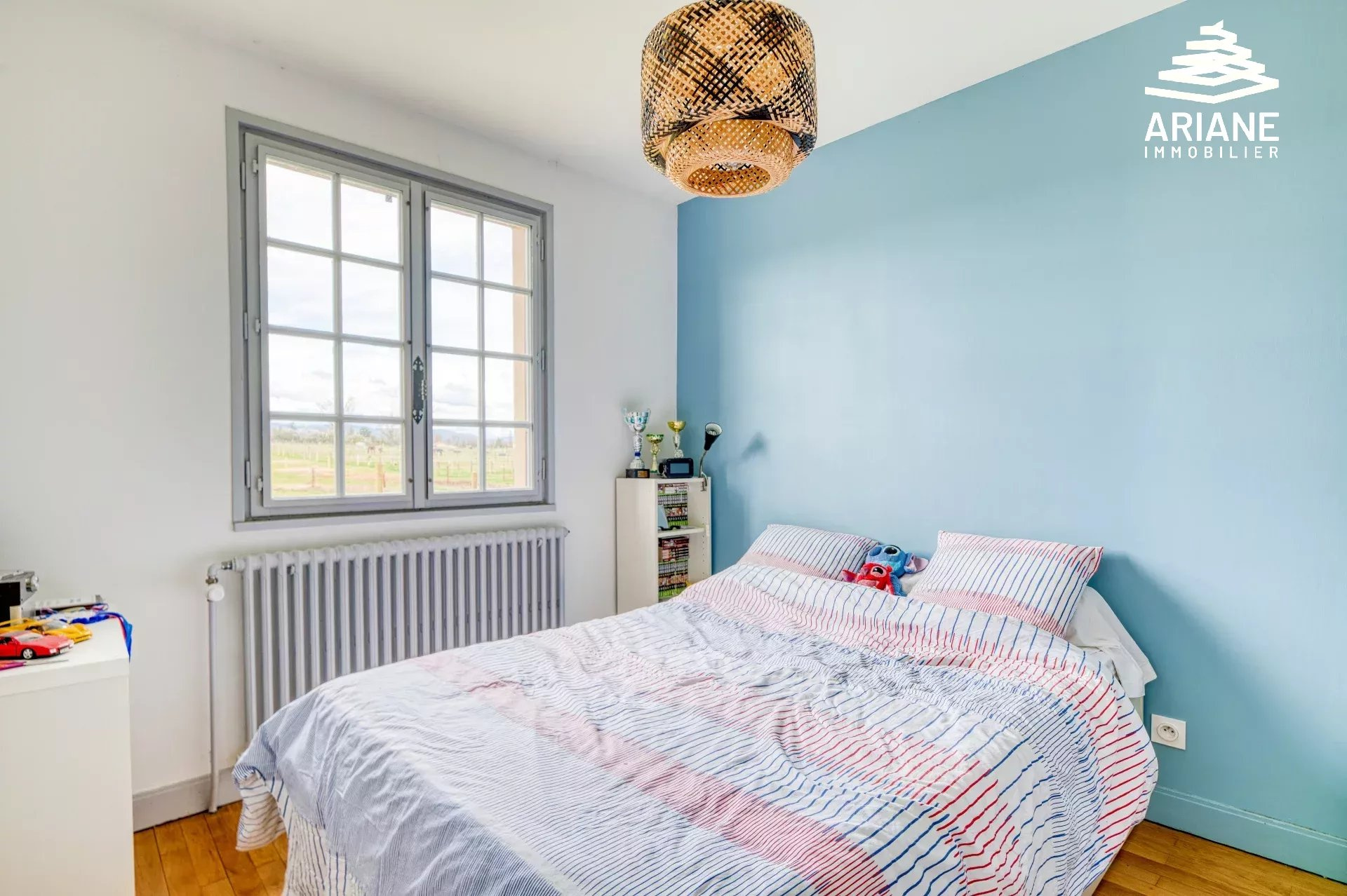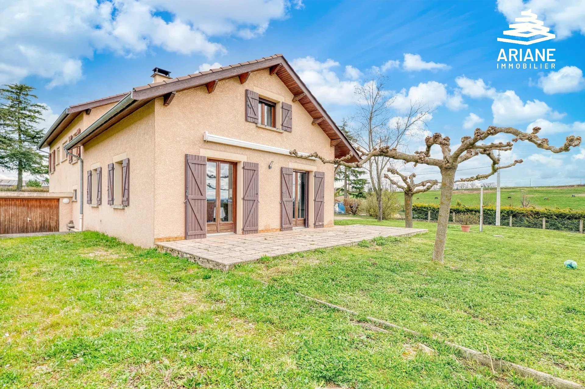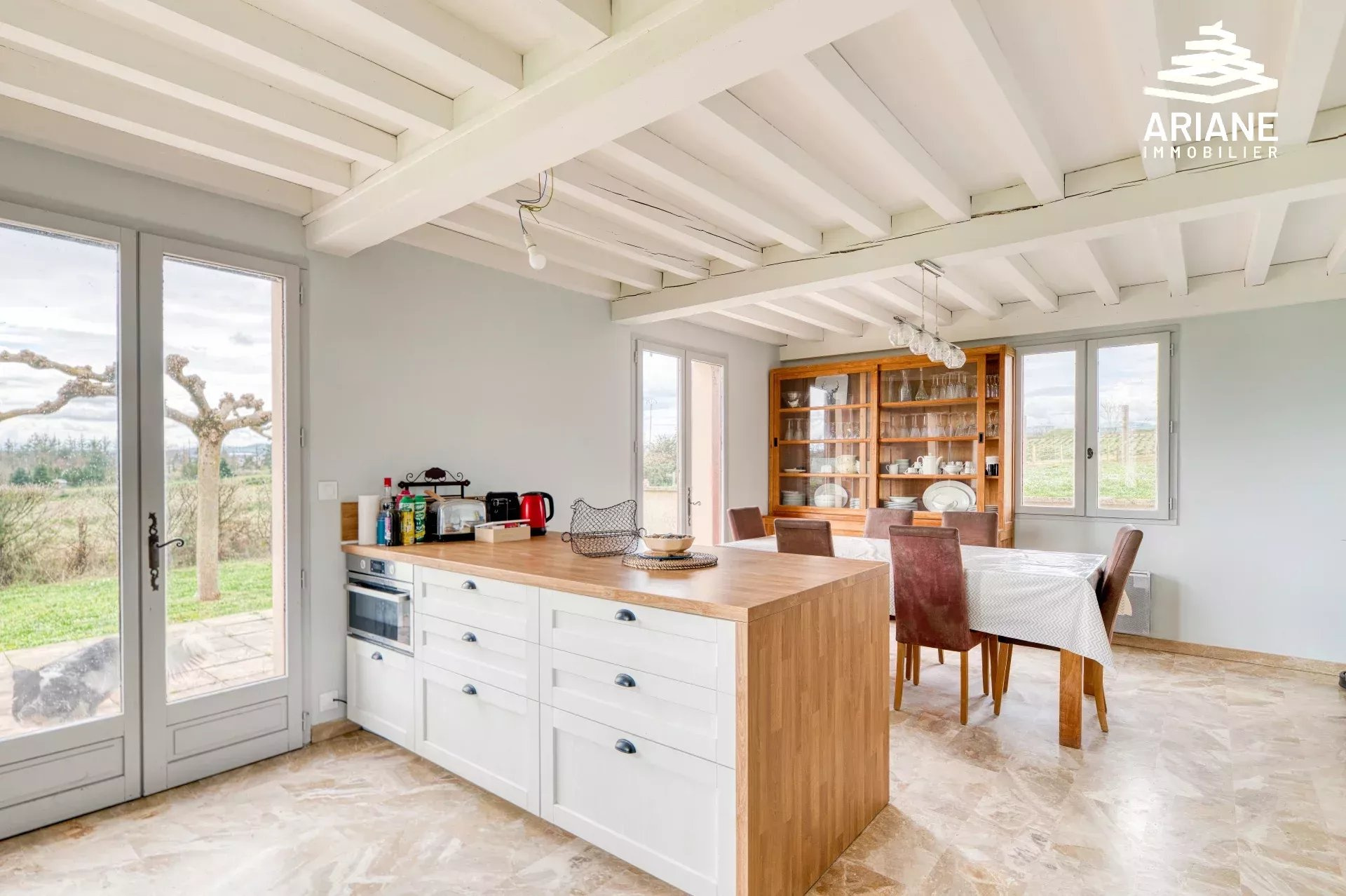 Située à proximité du village ainsi qu'à l'entrée de la Vallée en Barret (un des sites les plus remarquables de l'ouest lyonnais sur les plans écologiques et historiques). Grande maison lumineuse comprenant hall d'entrée, cuisine us ouverte sur salle à manger, 4 chambres, bureau, salle d'eau et 2 toilettes. Deux Grands garages ( 63m2 et 24m2 ). Dans sa configuration initiale, cette maison était scindée en 2 logements indépendants. Terrain de 2 488m2 avec grande terrasse exposée plein Sud. Construction traditionnelle. Chauffage central au sol. Visite virtuelle 3D et plans disponibles. Prix : 635.000EUR frais d'agence inclus Honoraires : à la charge du vendeur DPE : E Raphaël VILLARD - 06.22.57.18.08. Agent commercial immatriculée au R.S.A.C de Lyon